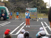 久賀っ子の5年生と6年生がスケアード・ストレイトによる自転車交通安全教室に参加してきました。町民体育館で自転車に乗る前や乗るときのルールについて話を聞いた後、駐車場に移動してから、スタントマンによるリアルな交通事故再現を通して、自転車に乗るときの約束や気をつけなければならないことを学びました。