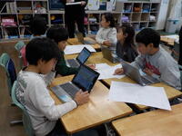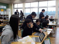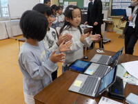 北総教育事務所から先生方に来ていただき、国語科や算数科、音楽科や家庭科などそれぞれの教科でICT機器の活用を図りながら学習を進めている様子を見ていただきました。久賀っ子たちがタブレット端末や電子黒板をそつなく使いこなす姿に多くの先生方が感心していました。これからも、久賀っ子たちの学力向上に向けて効果的にICT機器を活用しながら学習を進めていきます。