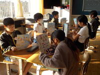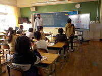 久賀っ子の4年生が外国語活動の学習をしています。今日は、自分で好きな色を一つ選び、その色の文字について友達とたずね合いながら、相手の選んだ色をあてる学習です。最初に、たずね合う時の英語での表現について全体で確認し、練習をしてから友達とペアを組んでたずね合いました。英語に親しみながら楽しく学習に取り組んでいる久賀っ子たちです。