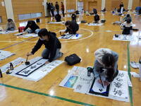 久賀っ子たちが書き上げた作品は、1月15日の16時まで体育館に展示してあります。