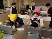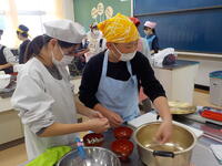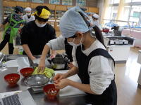 5年生が家庭科で調理実習をしました。今日は味噌汁を作ります。事前に計画をしていた通り、はじめに煮干しで出汁を取りました。それから、人数に合わせて量った材料を適当な大きさに切って鍋に入れ、味噌汁を作りました。調理後の試食では、自分たちがつくった味噌汁の味を確かめながら美味しくいただきました。