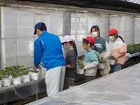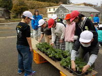 3年生と4年生が3回目の花交流を行いました。今回は多古高校に出向いて、今年度最後の交流となります。これまでの交流で、種をまき、ポットに移植してきたサイネリアを植木鉢に移しました。それぞれの段階での手入れの仕方を高校生から教わったことは、久賀っ子たちにとってとてもよい経験となりました。すてきな花を咲かせ、多くの人の心を和ませてくれることを願っています。