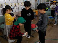 その後も、一緒に歌を歌ったり外で一緒に遊んだりして園児たちと楽しい時間を過ごしました。4月からは、久賀小学校での一緒の生活が始まります。その日を楽しみに園児たちとの交流が終了しました。