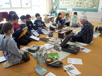 先日、校外学習で昔の人々の生活を学んできた3年生の久賀っ子たち。 今日は、講師の先生をお招きして昔の道具出前授業を行いました。火打石を使って、かまどなどに火をつけるときのやり方やはかりや長いものさしなどがもち運びしやすいようになっている構造になっていることなどを丁寧に教えてもらいました。昔の生活の様子がさらに詳しく知ることができた久賀っ子たちでした。