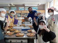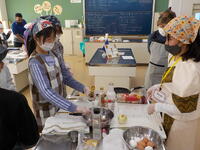 6年生が多古町の小中学校でALTをしている先生方と一緒に、イングリッシュクッキングを行いました。3つのグループに分かれて、ALTの先生がそれぞれ味の違うハンバーガーの作り方を英語で教えてくれました。使う材料や道具も全て英語で言われるので、久賀っ子たちは一生懸命聞き取りながら作業を進めていました。他にも、切って、炒めて、混ぜて、焼いてなど様々な動作を表す言葉とふれ合うことができました。久賀っ子たちは、最後に出来上がったハンバーガーを美味しくいただきました。