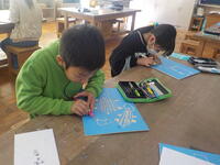 4年生が図画工作科で版画の学習を進めています。彫刻刀で彫った線の感じから想像を広げて表したいことを考えていきます。久賀っ子たちは、彫刻刀の使い方にも慣れてきて手際よく彫り進めていました。自分の思いが表現できた久賀っ子たちは、紙に刷って彫刻刀で彫った線の感じを楽しんでいました。