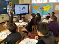 今日はALTの先生との外国語の学習の日です。6年生と5年生は外国語(英語)3年生は外国語活動で英語を使ってコミュニケーションが取れるように学習をしています。6年生は、将来なりたい職業について紹介し合いながら、様々な職業の英語での表現の仕方を学びました。5年生は、自分のあこがれの人を紹介し合うための表現の仕方について知ることができました。3年生は電子黒板に映し出された食べ物や生き物などを英語で答えるゲームを通して、様々な生き物の英語での言い方を覚えていました。これから多くの外国人の方々と英語を使って交流できる姿を期待しています。