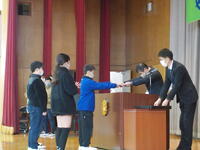 業間の時間に、児童会役員の引継ぎ式を行いました。今年度久賀っ子たちを引っ張ってきてくれた児童会役員のあいさつの後、次の児童会役員候補者の紹介と決意表明がありました。候補者一人一人が堂々と話をする姿に久賀っ子たちからの大きな拍手を経て児童会役員として承認されました。久賀っ子たちからの承認を得た5人は、校長先生から令和8年度の児童会役員の任命書を受け取りました。頼もしい新児童会役員の久賀っ子たちのこれからの活躍を期待します。