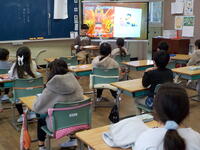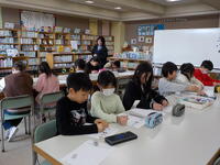 3年生が司書さんと一緒にアニマシオンを楽しみました。司書さんが「どうぞのいす」の読み聞かせをしてくれたあと、動物が出てきた順番や誰が何を持ってきたかなどのクイズに挑戦しました。どんなお話だったかを思い出すことで絵本の内容を深めていました。また、「どうぞのいす」に乗せたいものを考え、友達と紹介し合うことで読み聞かせから広がるお話の楽しさを感じていました。