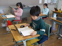 3年生が国語の学習で音読に挑戦しています。今日は「おにたのぼうし」の第三段落に取り組んでいました。音読の様子をタブレット端末で録画をしている久賀っ子たちの姿はとても集中していました。また、記録した動画を自分で見直すことで、聞き取りやすい速さや声の大きさで読めているかを確認しながら音読技能の向上をめざしています。