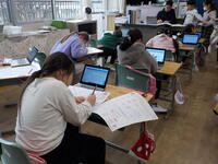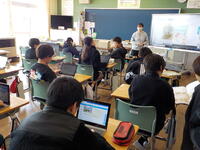 5年生が家庭科の「暖かい住まい方で快適に」で、住まいを暖かく快適にしていく仕方について学習しています。今日は、暖房器具を利用するときの換気の必要性や日光の利用、重ね着をして衣服で調整するなどの学習してきたことをいかして、寒い部屋を快適に過ごせるようにするためのアドバイスをまとめていました。