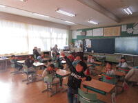 5時間目には、5年生が高校生と一緒に英語を学びました。高校生から自己紹介があると、それに関する内容を英語で答えることができました。また、高校生から英語で紹介された国の特徴をもとに、国名を答えるクイズでは、積極的に応える姿が印象的でした。お忙しい中、本校に来て一緒に学んでくださった高校生の皆さん、本当にありがとうございました。