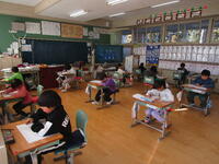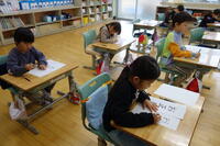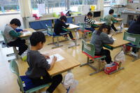 また、2校時目には、「一斉テスト」がありました。漢字50問(1年生は片仮名も含む25問)、計算20問です。どの教室も、冬休みの学習の成果を出そうと一生懸命に問題を解く「なかっこ」の姿が見られました。