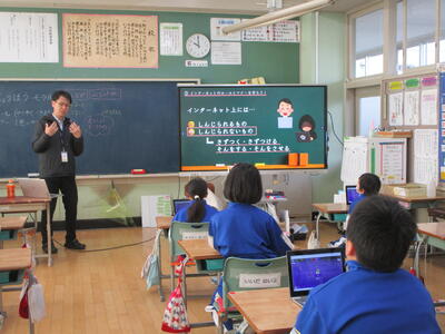 今日は、ICTアドバイザーの方がいらっしゃる日。2年生に、情報の扱い方や、そのよさや危険な点などを、分かりやすく教えていただきました。学校でも、タブレットでの学習に慣れてきている児童が多く見られるので、低学年の頃から知っておくことの重要性を感じました。