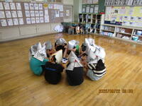 今日は、こども園の年長さん7名が、本校の1年生となかよく活動しました。