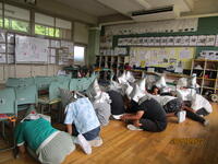子供たちは、「おかしも(おさない・かけない・しゃべらない・もどらない)」の約束を守り、素早く落ち着いて訓練に臨むことができました。