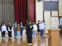 今日のリフレッシュタイムに、体育館で冬休み前の全校集会を行いました。