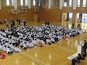 バスケットボールの県新人大会が千葉県立行徳高等学校体育館開催され、多古中学校は東庄中学校との合同チーム(香取支部代表)で出場しました。初戦の相手は、習志野市立第七中学校。第2クオーターまでは、1点差のゲームで自分たちのチームらしいプレーが見られました。残念ながら後半離され、53-69で敗退という結果でした。県大会のステージでプレイできたことは、これからのチームにとってもプラスになったと思います。