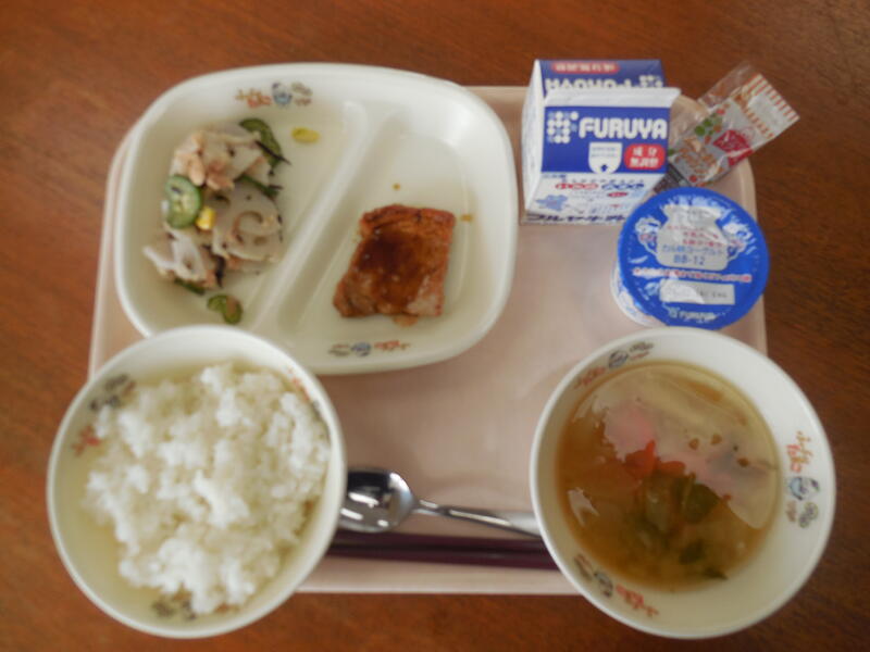 ・ごはん ・牛乳 ・トンテキ ・れんこんサラダ(たまねぎドレッシング)