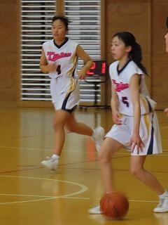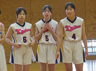 女子は、東庄中との合同チームで出場しました。初戦の佐原中との試合に勝利し、こちらも2日目の準決勝に進みました。準決勝は、牛堀中(潮来市)・麻生中(行方市)の合同チームと対戦し67-61で勝利しました。決勝は、小見川中と対戦し、チームワークの良いプレーで57-35で勝利し、優勝しました。また、優秀選手に平山望叶さんが選ばれました。