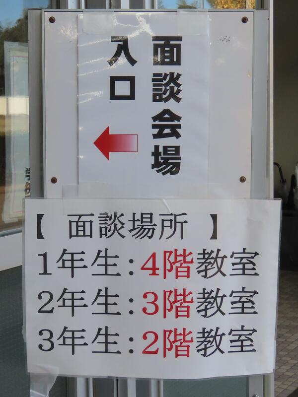 12月9日(火)から12日(金)まで、全学年で三者面談を実施しています。生徒、保護者、担任の三者で面談する機会を通して相互に理解し合い、よりよい教育活動の展開へとつなげていきます。御協力ありがとうございます。