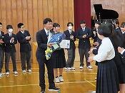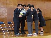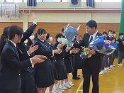 今年度いっぱいで多古中学校を転出することになった先生方の離任式を行いました。これまでお世話になった先生方とのお別れは寂しいですが、それぞれの新天地でのご活躍をお祈りし、明るい雰囲気で送り出すことができたよい雰囲気の式になりました。