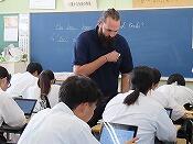 ・1年生英語 人物紹介のパフォーマンステストを行っていました。ALTの先生に聞いてもらうだけでなく、先生からの質問にも答えていました。