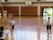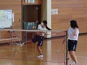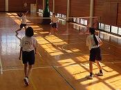 ・3年生女子保健体育 バドミントンの試合をダブルスで行っていました。声を掛け合いながら熱心にシャトルを追いかけていました。