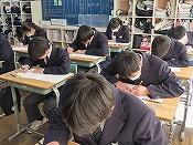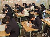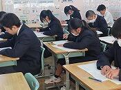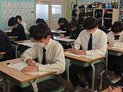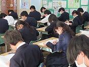 さて、今日から学校が再開しました。冬休み明け、新年の全校集会では、各学年代表の「新年の抱負」の発表がありました。その後、3年生は、入試に向けた今年度最後の実力テスト、1・2年生は冬休み課題テ ストに集中して取り組んでいました。新年初日から頑張る多古中生です。