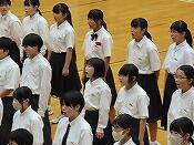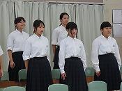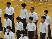 続いて、表彰伝達を行いました。新人戦の結果や各教科のコンクールや作品展の表彰が発表されました。