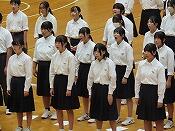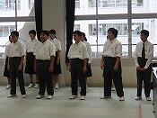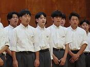 前期終業式では、校歌斉唱の後、各学年代表の前期を振り返っての発表がありました。3人ともこの6か月間で晩張ったことやこれからの課題、そして自分の考えを堂々と発表することができました。前期終業式にふさわしい、素晴らしい内容でした。
