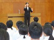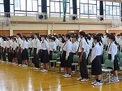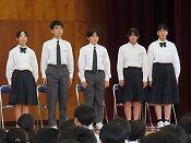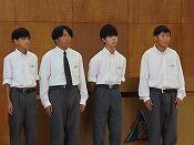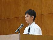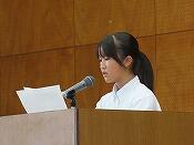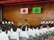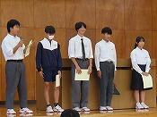 前期終業式では、校歌斉唱の後、各学年代表の前期を振り返っての発表がありました。3人ともこの6か月間で晩張ったことやこれからの課題、そして自分の考えを堂々と発表することができました。前期終業式にふさわしい、素晴らしい内容でした。