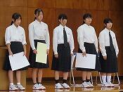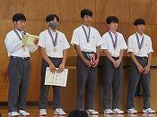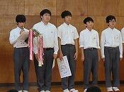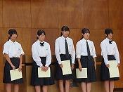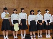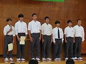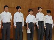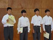 続いて、表彰伝達を行いました。新人戦の結果や各教科のコンクールや作品展の表彰が発表されました。